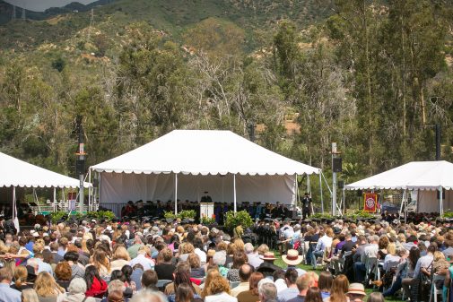 Under cloudy skies, 299 bright Westmont seniors celebrated their graduation May 7 at a lush Carr Field. About 5,000 family members and friends witnessed the pageantry as the college honored its top graduates and professors. Of the 299 students, 105 of them graduated with honors.