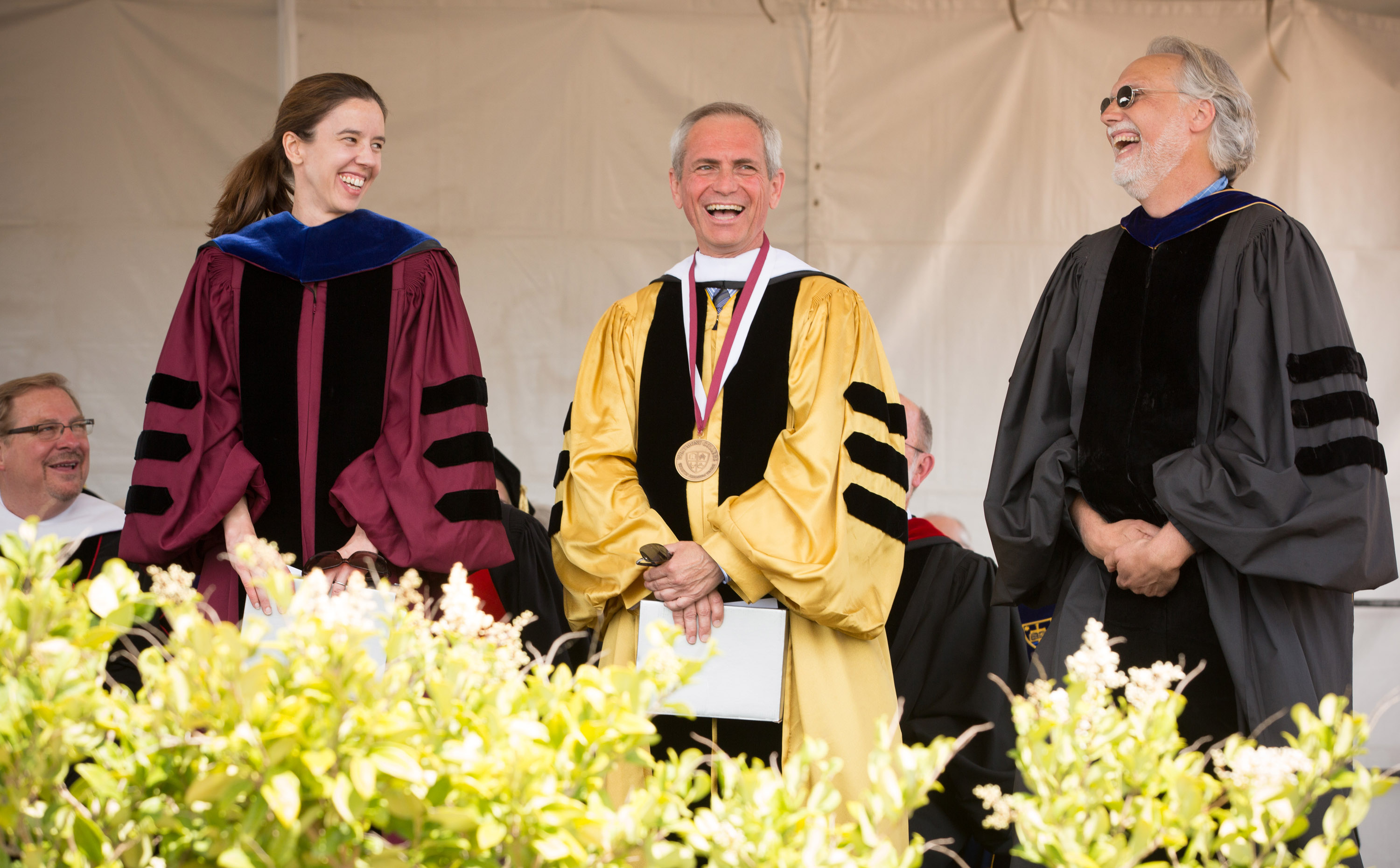 For the first time during Commencement, Provost Mark Sargent recognized the grant of emeritus status to Stephan Cook, who retired last spring after 32 years in the English department, specializing in American literature and initiating the study of film at Westmont.