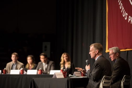 McChrystal expanded on the challenges of technology in answering questions from students. “With artificial intelligence and robotics, you’re going to very soon have robots make decisions on whether or not to strike and surround systems with the ability to shoot and a machine will be given enough to make a decision,” he said. “I am very uncomfortable with that.
